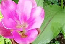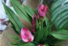 姜荷花为姜科姜黄属的多年生球根草本。株高30-80厘米;叶基生,长椭圆形,革质亮绿色,顶端渐尖,中脉为紫红色;穗状花序从卷筒状的心叶中抽出,上部苞叶桃红色,阔卵形,下部为蜂窝状绿色苞片;花期6-10月。…全部>>