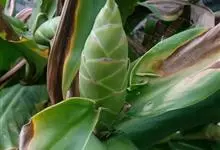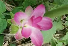 莪术姜科姜黄属多年生草本植物。主根茎陀螺状,淡黄色至白色;叶圆状长圆形至长圆状披针形,中部常有紫斑;花亭自根茎先叶发出,穗状花序阔圆形;苞片卵形,下部绿白色至绿色,上部紫红色;花冠白色或粉红色,…全部>>