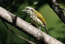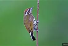 斑姬啄木鸟是鴷形目啄木鸟科姬啄木鸟属鸟类,又叫姬啄木鸟、小啄木鸟。体长9-10厘米。嘴尖而略粗壮,灰黑色;额棕色,向颈后逐渐过渡至橄榄绿色;眉纹白色,过眼纹黑褐色,其下有一白纹,…全部>>