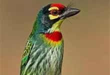 黑眉拟啄木鸟,为须䴕科、拟啄木鸟属的小型鸟类,体长20-25厘米,外形和金喉拟啄木鸟非常相似,但具粗著的黑色眉纹,头侧和耳覆羽以及下喉蓝色而不为银灰色,前颈两侧各有一块鲜红色斑。全部>>
