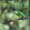 金喉拟啄木鸟,是须鴷科、拟啄木鸟属的鸟类。金喉拟啄木鸟为小型鸟类,体长19-24厘米。额深红色,头顶金黄色,后枕具一大块深红色斑,耳羽和头侧银灰色,上体草绿色,颏和上喉金黄色,下喉淡银灰色,…全部>>