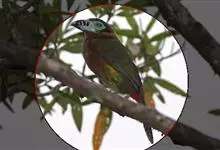 蓝喉拟啄木鸟,是须鴷科、拟啄木鸟属的鸟类。蓝喉拟啄木鸟为小型鸟类,体长20-23厘米。前额至头顶鲜红色,其上有一宽阔的黑色横带,将此红色分为前后二块;头侧、颏、喉蓝色,下喉两侧各具一红色点斑。…全部>>
