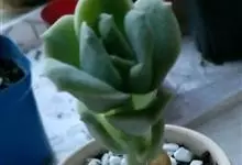 星美人是景天科、厚叶莲属多年生多浆肉质草本植物。植株具直立的短茎。叶12-20片互生,排列呈延长的莲座状,肉质,倒卵形,长2-4厘米,宽2-2.5厘米,厚2厘米,先端平滑钝圆,…全部>>