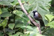 黑喉噪鹛是噪鹛属鸟类。体长24-29厘米,体重75-90克。雄鸟前额、眼先、眼周和眼后纹以及颊、须和喉黑色;黑色前额和蓝灰色头顶之间有道白色细斑;颈侧具椭圆形白斑,…全部>>