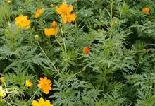 黄秋英是菊科秋英属的一年生草本植物。枝叶为对生的二回羽状复叶,裂片呈披针形;花为舌状花,有单瓣和重瓣两种,颜色多为黄、金黄、橙色,红色;瘦果棕褐色,粗糙有毛,顶端有细长喙;春播花期6-8月,…全部>>