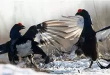 松鸡是鸡形目雉科松鸡属鸟类。钝圆的尾能如火鸡般竖起成扇形。上体辉紫,胸部辉绿,红色肉瘤成眉块。雄鸡蹄叫时尾及喉部羽毛竖起。褐色,重杂黑色、灰色及白色。虹膜为深褐,嘴为黑色,脚着灰色羽。在外形上,…全部>>