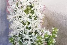 钝叶瓦松 J. M. H. Shaw)是景天科,八宝属二年生肉质草本植物。钝叶瓦松属于轴根型植物,茎生叶互生,花序紧密,苞片匙状卵形,花常无梗;萼片长圆形,花瓣白色或带绿色,长圆形至卵状长圆形,…全部>>