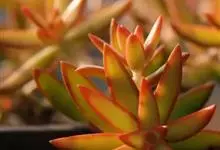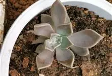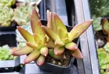 姬胧月是蔷薇目景天科植物。姬胧月株形和风车草属胧月极为相似。花瓣被蜡,叶排成延长的莲座状被白粉。平时为绿色,日照充足时叶色为朱红带褐色,叶呈瓜子型,叶末较尖,开黄色小花,…全部>>