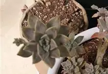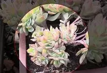 胧月 E.Walther)是景天科,风车草属多肉植物,常绿蔓生亚灌木,叶肥厚无柄,灰蓝色,阳光充足时呈粉红色,叶片枝顶簇生成莲座状,乳白色,花冠5裂,上有紫红色斑点,雄蕊两轮排列,花药鲜红色,…全部>>