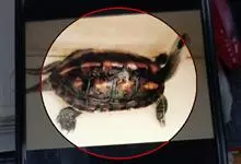 黑颈乌龟是龟鳖目淡水龟科乌龟属爬行动物;别名广东乌龟、广东草龟、黑点龟、黑颈水龟。黑颈乌龟体形较大,头较大,吻钝,略突出于上喙。头顶部黑色,侧面有黄绿色条纹;背甲黑色或棕褐色;中央有一条明显的脊棱,…全部>>