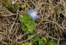 婆婆纳一年至二年生草本植物,有短柔毛。有蓝、白、粉三种颜色。茎自基部分枝,下部匍匐地面。三角状圆形或近圆形的叶子在茎下部对生,上部互生,边缘有圆齿。早春开紫红色小花,单生于苞腋。果期3-5月。喜光,…全部>>