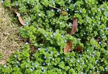 婆婆纳一年至二年生草本植物,有短柔毛。有蓝、白、粉三种颜色。茎自基部分枝,下部匍匐地面。三角状圆形或近圆形的叶子在茎下部对生,上部互生,边缘有圆齿。早春开紫红色小花,单生于苞腋。果期3-5月。喜光,…全部>>