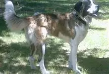 圣伯纳犬,别名巴里汉德,属于大型工作犬,肩高约65~90厘米,体重约50~90千克。圣伯纳犬身体强壮,被毛红褐色和白色相间,头圆而宽大。颈部强壮,胸宽深,背直。前肢长直,腕关节略前倾,后肢腿骨粗壮,…全部>>