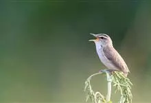 黑眉苇莺:体重7-11克,体长11-13厘米。上体橄榄棕褐色;眉纹淡黄色,杂有明显黑褐色纵纹;第2枚初级飞羽较第6枚短;下体白色,两胁暗棕色。虹膜暗褐色;嘴黑褐色,下嘴基淡褐色;脚暗褐色。…全部>>