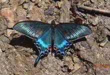 绿带翠凤蝶,又名深山凤蝶,为凤蝶科凤蝶属下的一种。分布于韩国、日本、中国台湾、中国大陆等地。翅黑色,满布金绿色鳞片。前翅亚缘具黄绿色横带纹。后翅外缘有6个略呈新月形的红斑,…全部>>