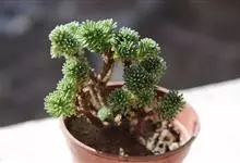 小松绿是景天科景天属植物,多肉植物,植株低矮,多分枝,株型近似球状,新枝浅绿色,以后逐渐转为灰白色,肉质叶近似针状。枝条下部的老叶容易干枯,贴在枝干上,形成类似松树皮般的龟裂,数月才脱落,…全部>>