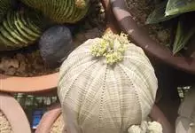 布纹球是大戟科、大戟属植物。植株小球形,直径8-12厘米。具棱8,整齐。表皮灰绿色中有红褐色纵横交错的条纹,顶部条纹较密。棱缘上有褐色小钝齿。雌雄异株,雌株球体较扁,雄株茎圆筒形,均为单生,…全部>>