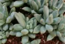 蓝黛莲是一种景天科厚叶草属植物。叶片呈略扁的圆柱形,排列成莲座状;颜色为灰绿色,表面覆盖的天然霜粉使其增添了些许灰蓝色的淡雅色调,阳光晒后叶尖变为红色。…全部>>