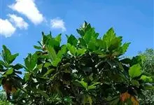 面包树 Fosberg)是桑科波罗蜜属植物。叶大,成熟之叶羽状分裂,表面深绿色,背面浅绿色;穗状花序单生叶腋,雄花序长圆筒形至长椭圆形或棒状;聚花果倒卵圆形或近球形;花期为3~5月,果期为7~10月。…全部>>