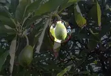 菠萝蜜是桑科波罗蜜属常绿乔木。老树常有板状根;叶革质,螺旋状排列,椭圆形或倒卵形;花雌雄同株,花序生于老茎或短枝上;果椭圆形至球形,成熟时黄褐色,核果长椭圆形;花期3-8月,果期6-11月。…全部>>