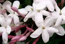 素馨花,木犀科素馨属多年生的攀援灌木植物。攀援灌木,小枝圆柱形,具棱或沟;叶对生,叶轴常具窄翼,小叶片卵形或长卵形;聚伞花序顶生或腋生,花序梗长,苞片线形,花萼无毛,裂片锥状线形,花冠白色,…全部>>