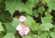 木芙蓉,锦葵科木槿属落叶灌木或小乔木。小枝上有细绒毛;叶片为卵状心形,托叶为披针形,常早落;花单生,花萼为钟形,花冠初为白色或淡红色,后逐渐变为深红色;果实为扁球形,有淡黄色的毛附着。花期8到10月。…全部>>