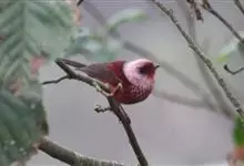 藏朱雀:全长约17-18厘米。雄鸟头部深红色具光辉,喉部暗红色具白色点斑;背部灰白色,各羽具玫瑰红色羽端,形成许多斑纹;腰部淡玫瑰红色;翅暗褐色,沾灰白,羽端沾玫瑰红或灰白色;尾暗棕色,端缘玫瑰红色…全部>>