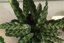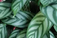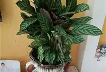孔雀竹芋:竹芋科,肖竹芋属多年生常绿草本植物。植株挺拔株高可达60厘米。叶柄紫红色, 叶片薄革质,卵状椭圆形,叶面上有墨绿与白色或淡黄相间的羽状斑纹,就像孔雀尾羽毛上的图案,因而得名。…全部>>