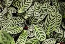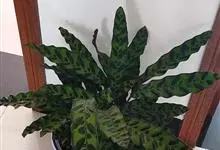 孔雀竹芋:竹芋科,肖竹芋属多年生常绿草本植物。植株挺拔株高可达60厘米。叶柄紫红色, 叶片薄革质,卵状椭圆形,叶面上有墨绿与白色或淡黄相间的羽状斑纹,就像孔雀尾羽毛上的图案,因而得名。…全部>>