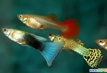 孔雀花鳉 ,俗名孔雀鱼,也称为凤尾鱼、彩虹花鳉、虹鳉、古比鱼等,是花鳉科花鳉属的一种热带鱼,雌雄鱼的体型和色彩差别较大,成年雄鱼身体瘦小,体长3-4厘米,体色绚烂多彩、体型优美;成年雌鱼体长5厘米…全部>>