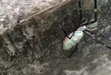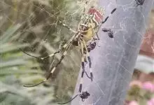 棒络新妇,是蜘蛛目肖蛸科络新妇属节肢动物。雄蛛体长约6毫米,背甲褐色,具黑色纵斑;步足黑色,有橙色环纹;腹部筒形、褐色,有黄斑;雌蛛体长约21毫米,背甲黑色,有大量银色长毛;触肢黄色,步足黑色,…全部>>
