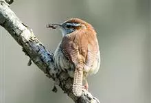 冬鹪鹩:是一种小型鸣禽,原产于北美的冬鹪鹩,传入旧大陆后简称鹪鹩。共有29个亚种,成鸟体长9-10厘米,翼展13-17 厘米,体重8-13克。通体褐或棕褐色,具众多的黑褐色细横斑。飞羽黑褐色,…全部>>