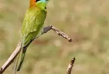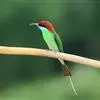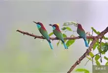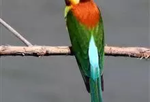 绿喉蜂虎是佛法僧目、蜂虎科的小型鸟类,共有9个亚种。身长22-25厘米,翼展29-30厘米,体重15-20克。喉绿色,额部、头顶至上背为锈红色,其余上体均为亮绿色。中央尾羽延长且端段狭细,…全部>>