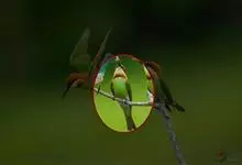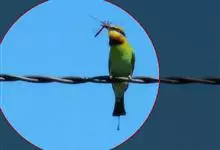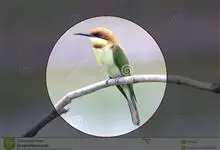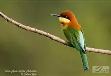 栗喉蜂虎是蜂虎科蜂虎属的鸟类。有热带鸟类羽毛艳丽的特征:喉部是栗红色的,黑色的过眼纹,翅膀和背部是绿色的,尾翼是蓝色的,飞行时翅膀下面的羽毛是橙黄色的,在阳光的照射下,它们全身闪烁着金属般的艳丽光泽,…全部>>