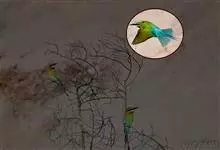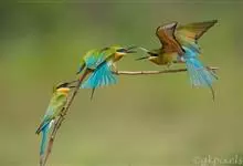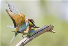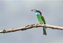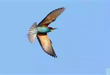 蓝颊蜂虎:是蜂虎科、蜂虎属的鸟类,共有2个亚种。体长27-33厘米,翼展46-49厘米,体重38-50克。嘴形细长而下弯,先端尖,…全部>>