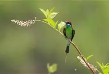 蓝颊蜂虎:是蜂虎科、蜂虎属的鸟类,共有2个亚种。体长27-33厘米,翼展46-49厘米,体重38-50克。嘴形细长而下弯,先端尖,…全部>>