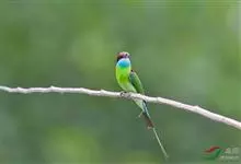 栗喉蜂虎是蜂虎科蜂虎属的鸟类。有热带鸟类羽毛艳丽的特征:喉部是栗红色的,黑色的过眼纹,翅膀和背部是绿色的,尾翼是蓝色的,飞行时翅膀下面的羽毛是橙黄色的,在阳光的照射下,它们全身闪烁着金属般的艳丽光泽,…全部>>