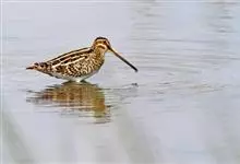 扇尾沙锥是鹬科、沙锥属鸟类,又称普通沙锥、扇尾鹬、小沙锥。体型小;喙粗长而直;上体黑褐色,具栗色和黄白色斑纹;头顶具黄白色中央冠纹,背具4条白纵带;下体白色,颈、胸淡褐色,带褐色纵纹;翼后缘白色,…全部>>