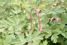 荷包牡丹 Fukuhara),是罂粟科荷包牡丹属的多年生草本植物,株高30-60厘米,具肉质根状茎;茎直立呈圆柱形;叶二回三出全裂,状似牡丹叶;总状花序顶生,基部为心形,花瓣紫红色至粉红色,稀白色,…全部>>