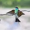 蓝颊蜂虎:是蜂虎科、蜂虎属的鸟类,共有2个亚种。体长27-33厘米,翼展46-49厘米,体重38-50克。嘴形细长而下弯,先端尖,…全部>>