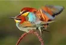 蓝颊蜂虎:是蜂虎科、蜂虎属的鸟类,共有2个亚种。体长27-33厘米,翼展46-49厘米,体重38-50克。嘴形细长而下弯,先端尖,…全部>>