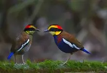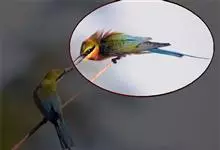 蓝喉蜂是蜂虎科蜂虎属鸟类。体长26-28厘米,嘴长而弯曲,有明显细长的中央尾羽。头部、颈部和背部为巧克力色,有黑色眼纹。喉部、腰部和尾羽为蓝色。腹部和两翼为绿色。幼鸟外观似成鸟,头部、颈部和背部为绿色,…全部>>