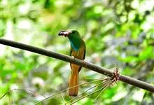 蓝须夜蜂虎是佛法僧目、蜂虎科的鸟类,体长约30厘米,是绿色林栖型蜂虎,蓝色的胸羽蓬松,嘴厚重而下弯。成鸟顶冠淡蓝,腹部棕黄带绿色纵纹。尾羽腹面黄褐。亚成鸟全身绿色。喉、胸部中央的羽甚长和亮色;该物种…全部>>