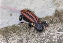 大凉疣螈雄性全长18.6~22㎝,雌性19.4~23㎝。头部扁平,头长略大于头宽,吻端平切而较高,近于方型。尾基部较宽,后段甚侧扁,尾背鳍褶薄,腹鳍褶厚,尾末端钝尖。体尾褐黑色或黑色,…全部>>