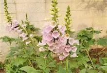 毛地黄是车前科、毛地黄属一年生或多年生草本植物。株高0.5—1米,茎直立,少分枝,全株被灰白色短柔毛和腺毛叶基生,呈莲座状,卵圆形或卵状披针形。顶生总状花序,花冠钟状,紫红色,内面有浅白斑点。菊果卵形。…全部>>