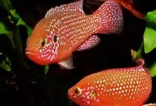 红宝石鱼是鲈行目慈鲷科伴丽鱼属 鱼类,又名红花鲈、宝石鱼。个体较大,身长12—15厘米。背鳍宽大,基部长。体色从下颌至尾鳍,侧线以下均为赤红色,背鳍、臀鳍和尾鳍边缘也为红色,…全部>>