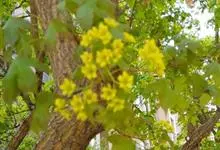 元宝槭为无患子科槭属落叶乔木,高达10米。叶长5—12厘米,宽8—12厘米,裂片三角状卵形,基部平截,稀微心形,幼叶下面脉腋具簇生毛,掌状;叶柄长3—13厘米。伞房花序顶生;雄花与两性花同株。…全部>>