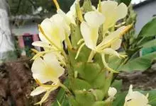 黄姜花:姜科,姜花属多年生草本草本芳香花卉,秋冬季开花,穗状花序,长圆形;苞片长椭圆形,覆瓦状排列,每一苞片内有花3-5朵;花深黄色,形似蝴蝶,气味芬芳纯正,沁人心脾;唇瓣倒心形,黄色,…全部>>