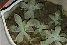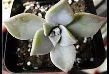 胧月 E.Walther)是景天科,风车草属多肉植物,常绿蔓生亚灌木,叶肥厚无柄,灰蓝色,阳光充足时呈粉红色,叶片枝顶簇生成莲座状,乳白色,花冠5裂,上有紫红色斑点,雄蕊两轮排列,花药鲜红色,…全部>>