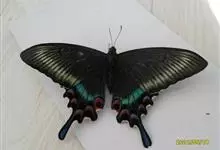 绿带翠凤蝶,又名深山凤蝶,为凤蝶科凤蝶属下的一种。分布于韩国、日本、中国台湾、中国大陆等地。翅黑色,满布金绿色鳞片。前翅亚缘具黄绿色横带纹。后翅外缘有6个略呈新月形的红斑,…全部>>